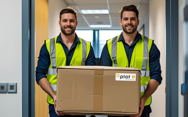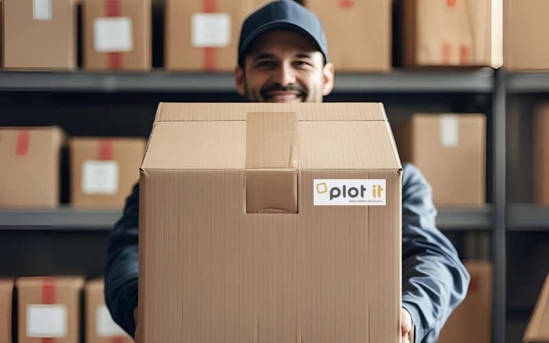 Our standard option – Your machine is dispatched to you by courier and can be delivered to a ground floor location. It is your responsibility to ensure sufficient access is available into your building for delivery. The packaged product is then left with you to unpack, check, assemble, load inks and connect to your PC or network. As this is a one man delivery crew it maybe necessary for you to assist the driver to unload.