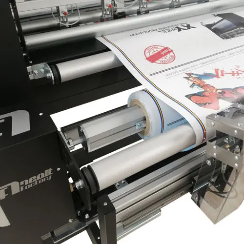 The XY TRIM PLUS WALLPAPER reads the printed vertical marks along the roll length and automatically adjusts the media to ensure a perfect and straight wallpaper cut.