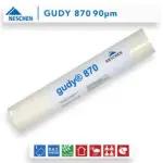 Neschen Gudy 870 90µm: This lightweight, high strength, adhesive film for particularly smooth and flexible bondings. The carrierless mounting film gudy 870 is an excellent choice for the production of high-quality cold laminations of digital or analogue prints or drawings on various stiff board materials such as aluminium, rigid foam, Forex, polycarbonate or polystyrene. Gudy 870 allows easy production of self-adhesive boards. The flexible adhesive even allows for cutting or sawing mounting boards after application. In addition, this product can be used very well for professional mounting of light, slightly structured fine art and artist papers on various rigid boards such as aluminium, Kapa®, Colourmount Fine Mountboards, as well as other well-known board materials.