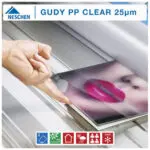 Neschen Gudy PP Clear 25µm: Discover a PVC-free laminating film for laminating digital or analogue prints on boards such as aluminium, rigid foam, Forex, polycarbonate or polystyrene. This product provides excellent results in combination with Neschen's PP based protective films Filmolux PP Gloss and Matt.