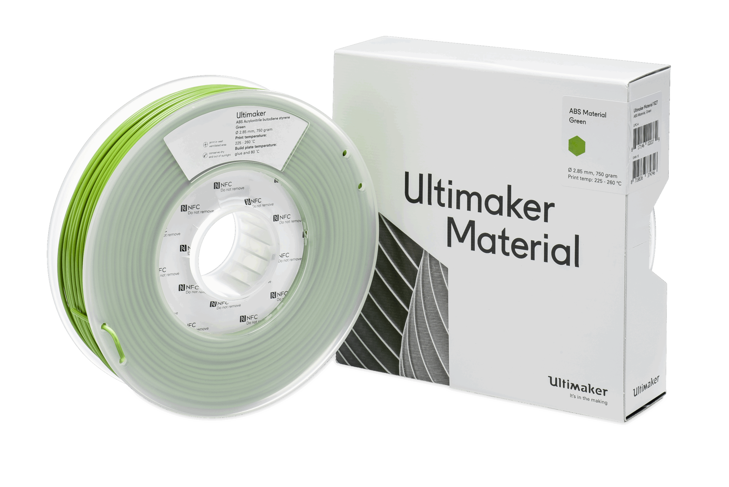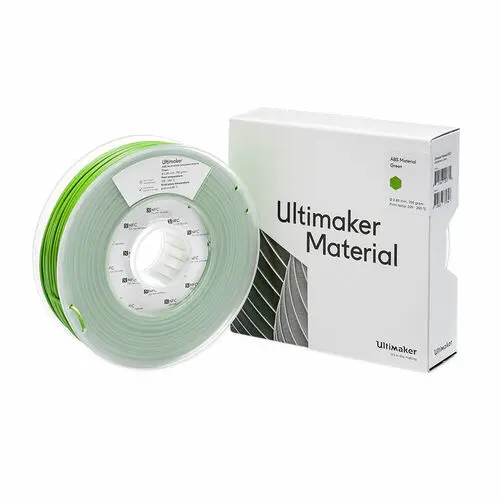 UltiMaker ABS Green 750g Filament (1627): Used by an array of industries worldwide, ABS is known for its exceptional mechanical properties. Ultimaker ABS is specifically formulated to minimise warping and ensure consistent interlayer adhesion. This product is approximately 90m long.