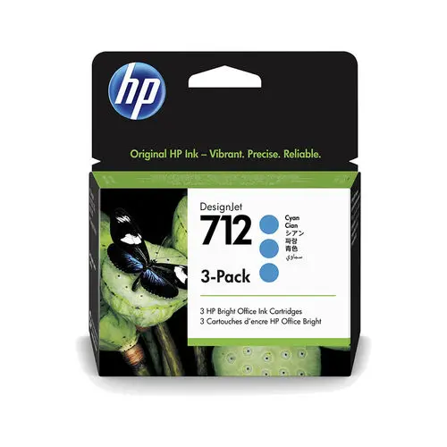 HP 712 3ED77A DesignJet T230 T250 T630 T650 & Studio Cyan 29ml Ink Cartridge (3 Pack)