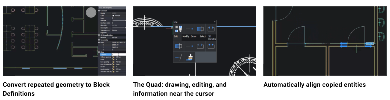 The latest update also introduces an enhanced Sheet Set Manager for improved collaboration, particularly useful in multi-user environments. Additionally, the Lite version includes the updated Quad cursor menu, offering predictive command options to speed up workflow and reduce manual input. Interoperability is bolstered by full LISP compatibility, so existing AutoCAD routines can be utilized, and custom automation can be developed efficiently.