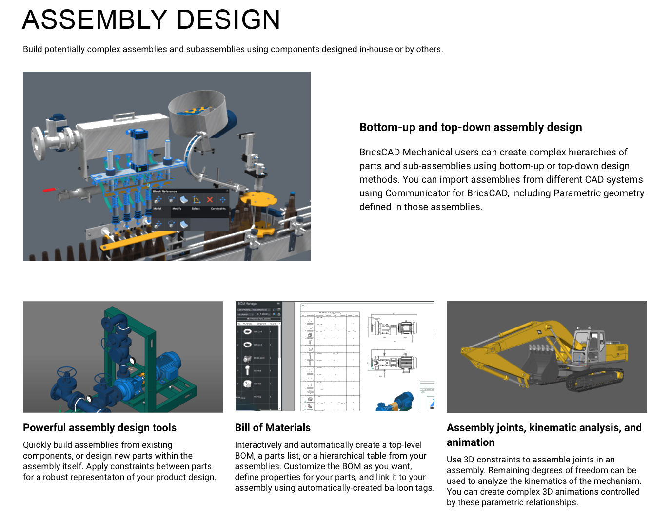 • Support for hierarchical assemblies, including parts and subassemblies.