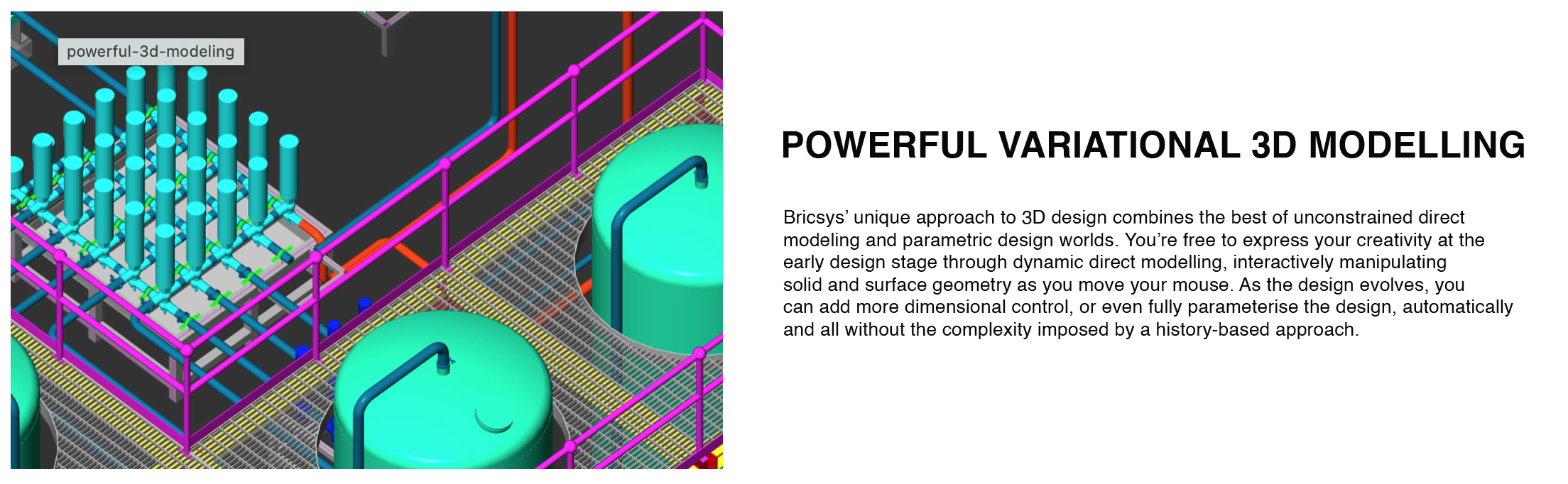 - 3D Direct Modelling: BricsCAD Pro supports 3D direct modeling with parametric constraints, which allows for flexible editing of complex designs without needing a history-based approach. This makes it highly efficient for users who need to make quick modifications.