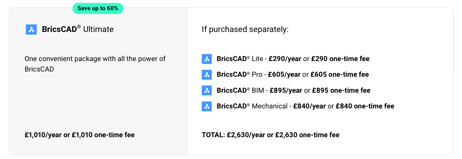 BricsCAD Ultimate V25 – Single User Upgrade from Ultimate V22 or older to Ultimate V25 (ULT-SU-PER-UPG-V22-1Y):