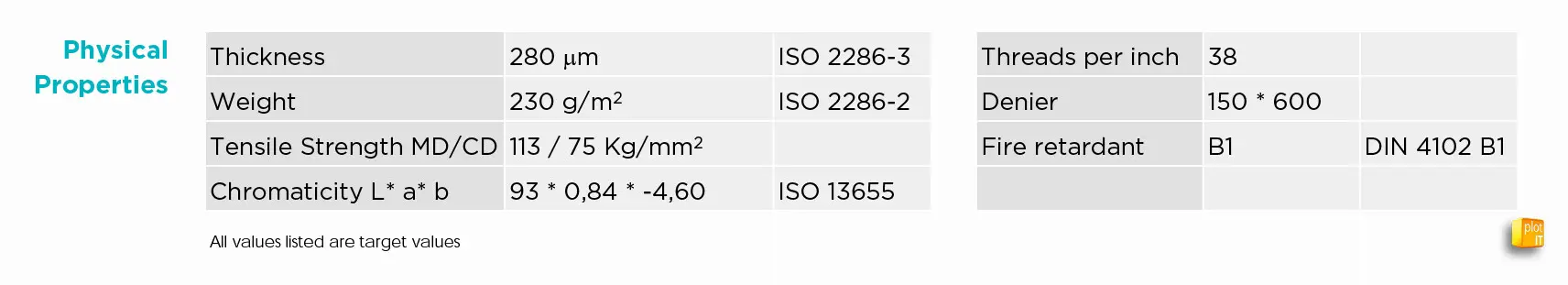 Canon IJM579 Polyweave Heavy B1 235g/m²: B1-certified, 100% polyester, heavy photo textile, with a water-resistant, matt surface, for indoor and short- term outdoor use.