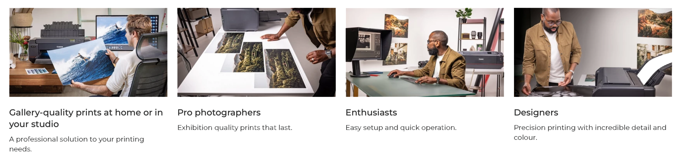 Canon’s Professional Print & Layout software offers a powerful tool to manage and optimise your print jobs. This software is designed with versatility in mind, providing comprehensive features to ensure your prints meet the highest standards. Additionally, for users working within the Adobe ecosystem, the Professional Print & Layout software is available as a plug-in, allowing you to maintain your existing workflow without interruption. This integration makes it easy to move from digital creation to physical print, ensuring consistent, high-quality results every time.