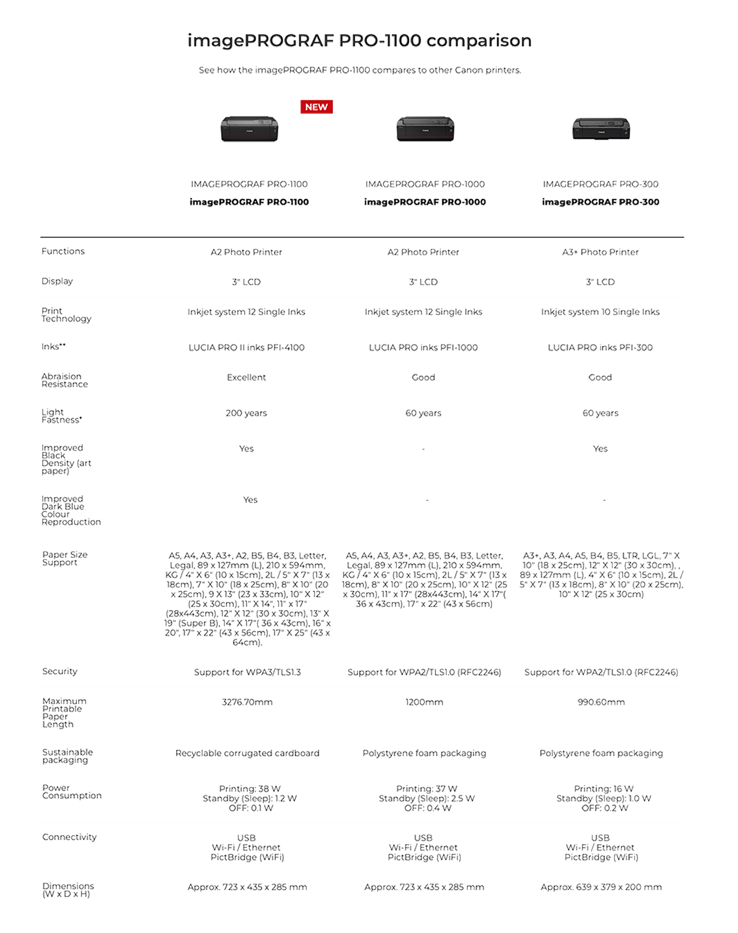 Canon has unveiled the ImagePrograf Pro-1100. The successor to the nearly decade-old ImagePrograf Pro-1000, designed for studios, professional photographers and businesses.