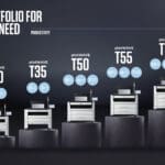 The new monochrome plotWAVE T-series replaces the previous PlotWave range and comes in five different models: the T30/35, T50/55 and T75, producing up to ten A1 prints per minute and offering a media capacity of up to 1,200 meters (3,937 ft) on six rolls up to 914 mm (36″) wide.