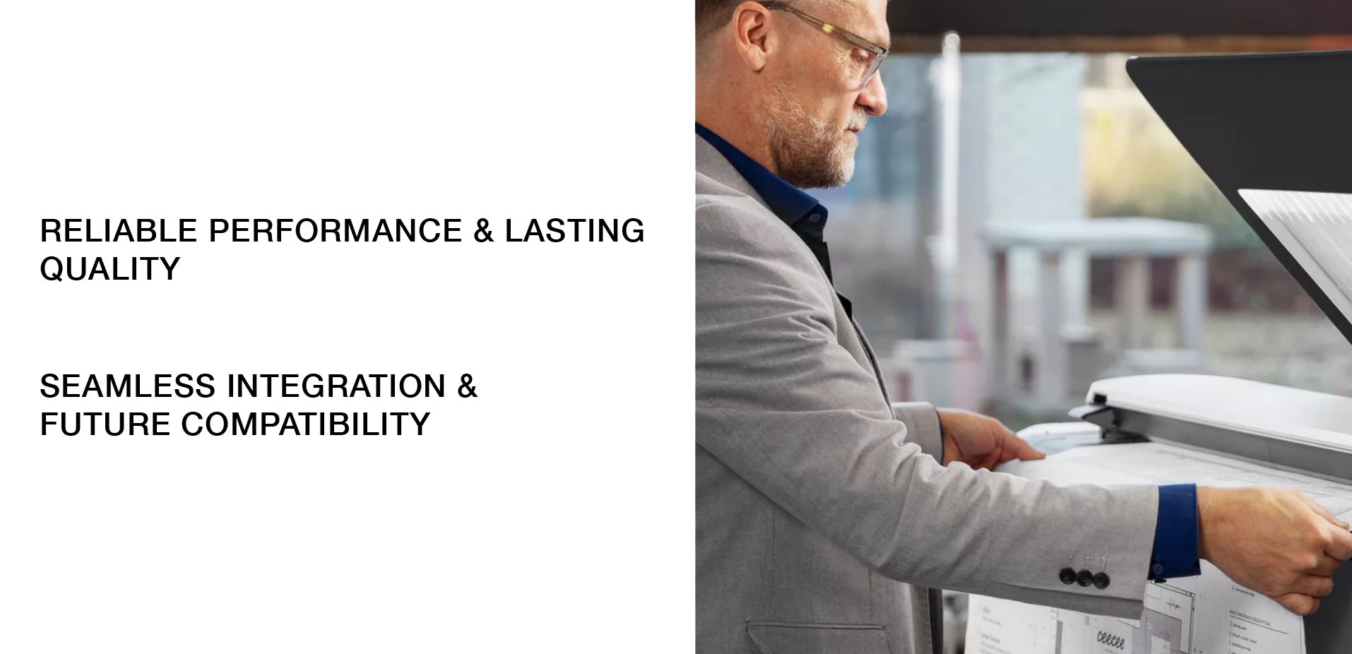 The plotWAVE T-series combines proven technology with a robust printer design and an extensive IT security strategy within a circular design framework, promoting sustainable business practices. It delivers effortless, highly efficient monochrome printing of technical drawings and designs with enhanced security features, ensuring support for your sustainable business goals for years to come.