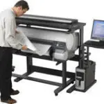 Colortrac's Universal Repro Stand, a tall stand that allows the scanner to be positioned above most wide format inkjet printers in a multi-function copy /scan / print system. The maximum permissible height is 1250 mm.