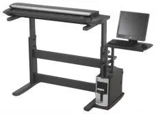 The universal repro stand has an integral PC & LCD monitor mountings. Catch basket option is not available on URS. It's ideal if you are tight on space but require multifunctional Large format colour output with copying and scanning.