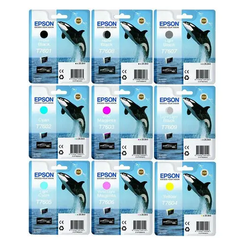 Epson UltraChrome HD ink means serious amateur and professional photographers can now deliver superb images with highly accurate colours. This newly designed ink-set includes new Photo Black and Matte Black inks to help produce images with stunning levels of detail when printed in both colour and black and white.