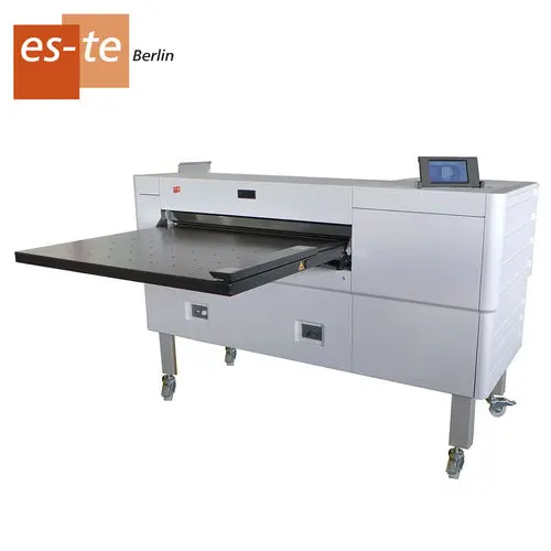 The Estefold 3010 impresses with its unique 7″ touch display. Selected folding style or specific instructions are shown in unmatched detail. Individual folding styles can be created, saved and restored conveniently and in unprecedented flexibility. Adjusting the folding speed between 3 – 30 m/min is quick and easy. Longitudinal and transverse folding are carried out with highest precision & consistent accuracy, in one step.