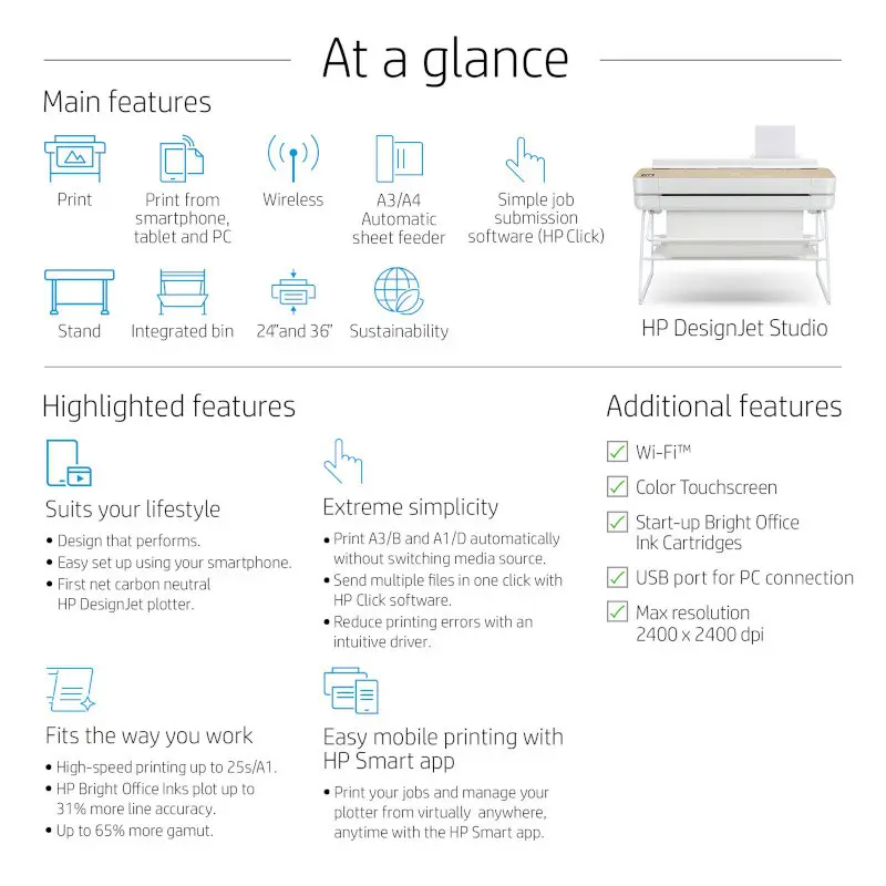 Its radical simplicity helps design professionals make the most of their time & the HP Smart App enables you to print from any connected device, anywhere.
