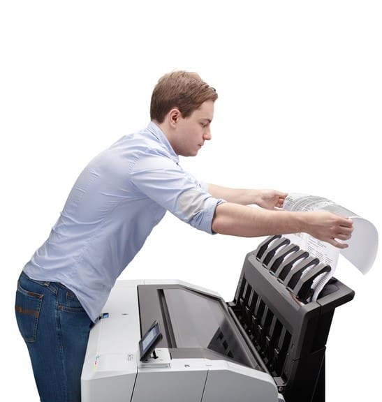 Enjoy a seamless workflow with the robust front stacker. It’s capable of neatly holding up to 100 prints and the top-access design allows for easy document collection. You can also output to the lower basket collector for additional flexibility.