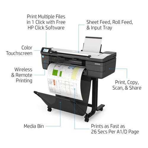 The CAD and technical market has screamed out for years for an affordable A1 device to provide both colour plotting and wide-format scanning/copy. The HP DesignJet T830 24″ MFP delivers all the features low volume environments demand, including a compact footprint at a cost, which is over 30% less than alternatives.