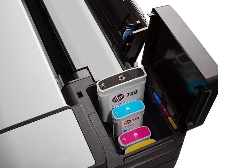The 728 ink gives a choice between keeping expenditure low on rarely used colours or loading with extremely economical 130ml or even 300ml inks. This makes it ideal if you only want to print B+W or just the odd colour line drawing. If you find you need full colour renders, you have a high capacity option.