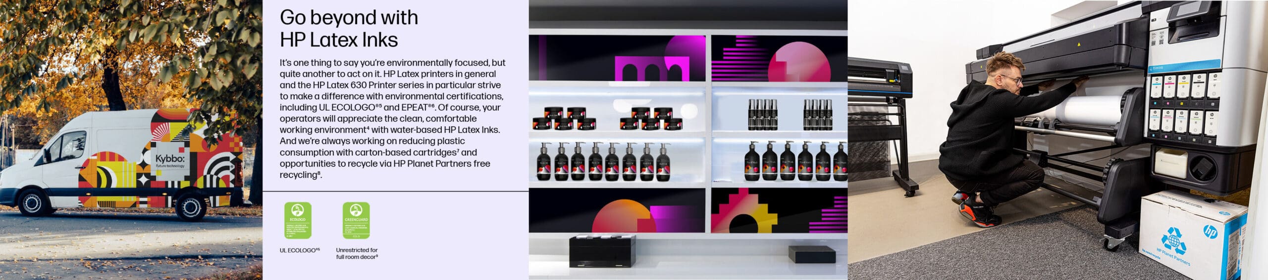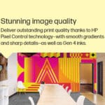 The HP Latex 630 Printer series allows you to deliver stunning, impeccable prints that leave a lasting impression on your clients. Showcasing vibrant colours, seamless gradients and razor-sharp text at a remarkable speed of 14 m²/hr. What’s more, your prints are dry from the printer, simplifying finishing and installation processes.