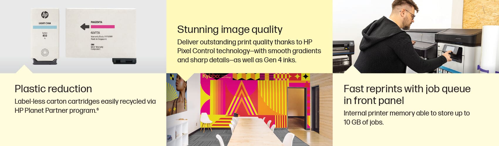 Job storage in the printer makes reprinting projects nearly effortless. And the cloud-based HP PrintOS app enables you to do more and monitor your printer from anywhere.