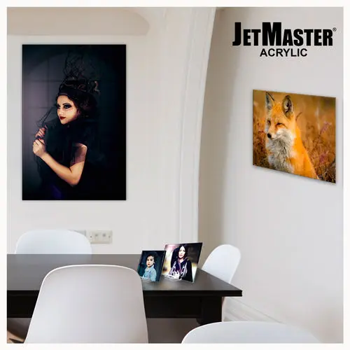 JetMaster® Acrylic Panels allow you to easily mount your photo prints in an elegant, minimalist, style creating eye catching displays in seconds.  The completely transparent surface of the panels shows every part of your image, with nothing covered under the edge of a frame.  Acrylic prints are also more durable than glass, with no risk of shattering if accidentally dropped or knocked.