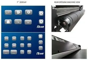 NEOFOLD PL is equipped with an intuitive 7’’ touch screen display allowing users to select multiple fold sizes, compensated folds and even program frequently used job styles.