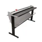 An industrial rotary trimmer for signage, print shops and photo labs, with a wide cut width of 2mt / 2000 mm and a deep cutting depth of 1.6mm capable of cutting PVC Banners & vinyls as well as paper and some card stocks supplied with a robust stand and media collection basket, along with optional roll holder attachment.