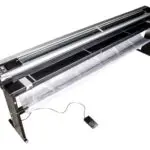 - illuminated work surface and fluorescent wire to show the cutting line with sheet holder