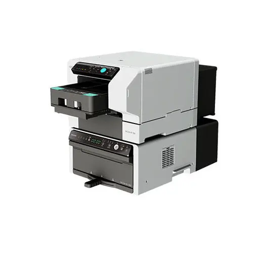 RICOH Ri 100 Direct to Garment Printer (DTG) with its space-saving design and low price point gets you into the textile printing market easily.