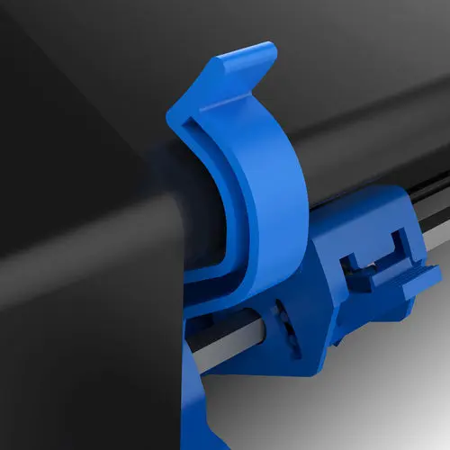Mechanical adjustable parts are highlighted with a light blue colour, enabling the operator to quickly switch between them. Also, changing tools for a quick setup of the next cutting job is now a child’s play.