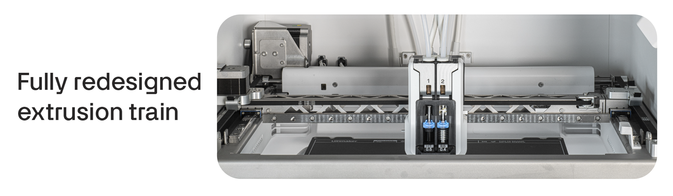 The integration of the innovative H-bridge gantry and direct drive extrusion print head in Factor 4 enables rapid movement and exceptional positional accuracy, with a precision of ±0.2 mm or ±0.2% of the nominal length of features using UltiMaker Verified Materials. This advancement facilitates industry-leading dual material printing speeds, allowd you to swiftly produce the flexible or robust parts you require.