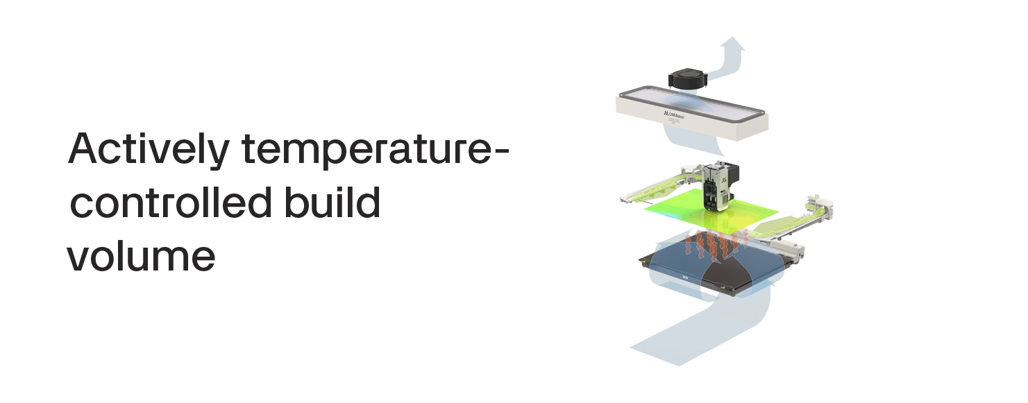 Within the fully enclosed build volume, temperatures are meticulously controlled, reaching up to 70°C, while the heated bed can achieve temperatures of up to 120°C. These precise temperature controls ensure optimal processing conditions tailored to specific materials, guaranteeing consistent and high-quality part production regardless of the printer’s location.