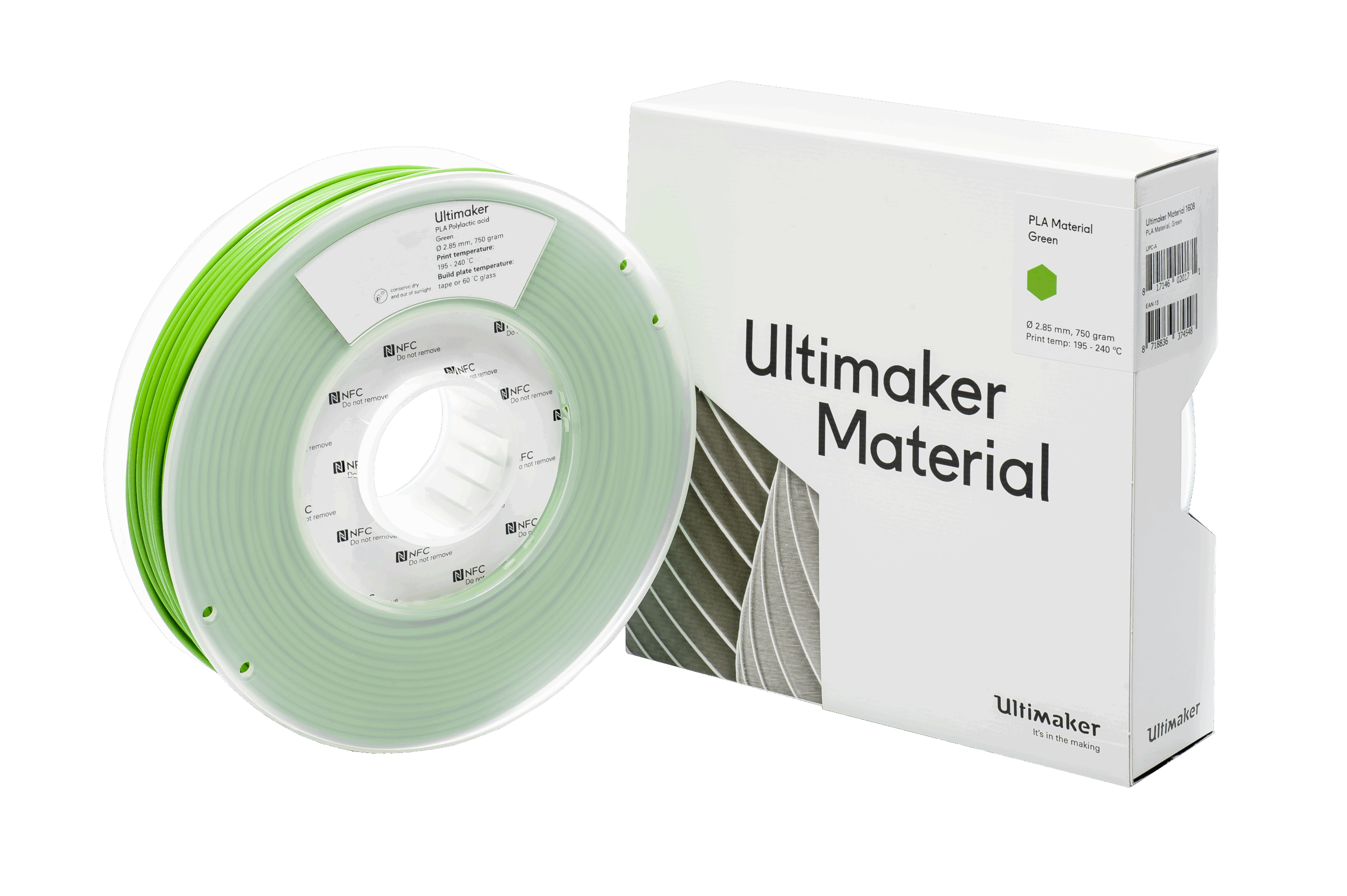 UltiMaker PLA Green 750g Filament (1608): PLA (polylactic acid) is versatile, easy to 3D print, and available in 11 colours. It prints reliably with high dimensional accuracy and a quality surface finish. This product is approximately 90m long.