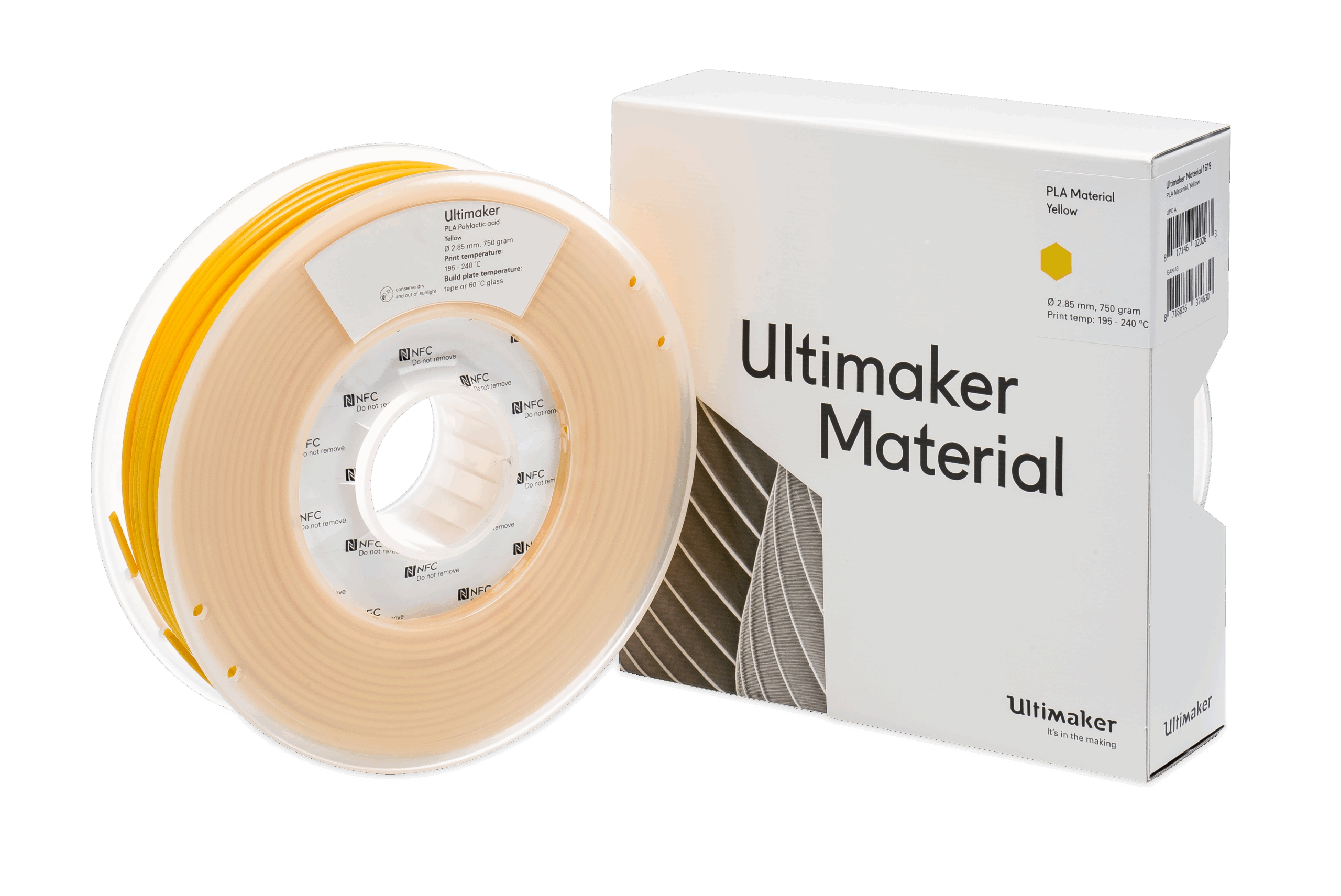 UltiMaker PLA Yellow 750g Filament (1619): PLA (polylactic acid) is versatile, easy to 3D print, and available in 11 colours. It prints reliably with high dimensional accuracy and a quality surface finish. This product is approximately 90m long.