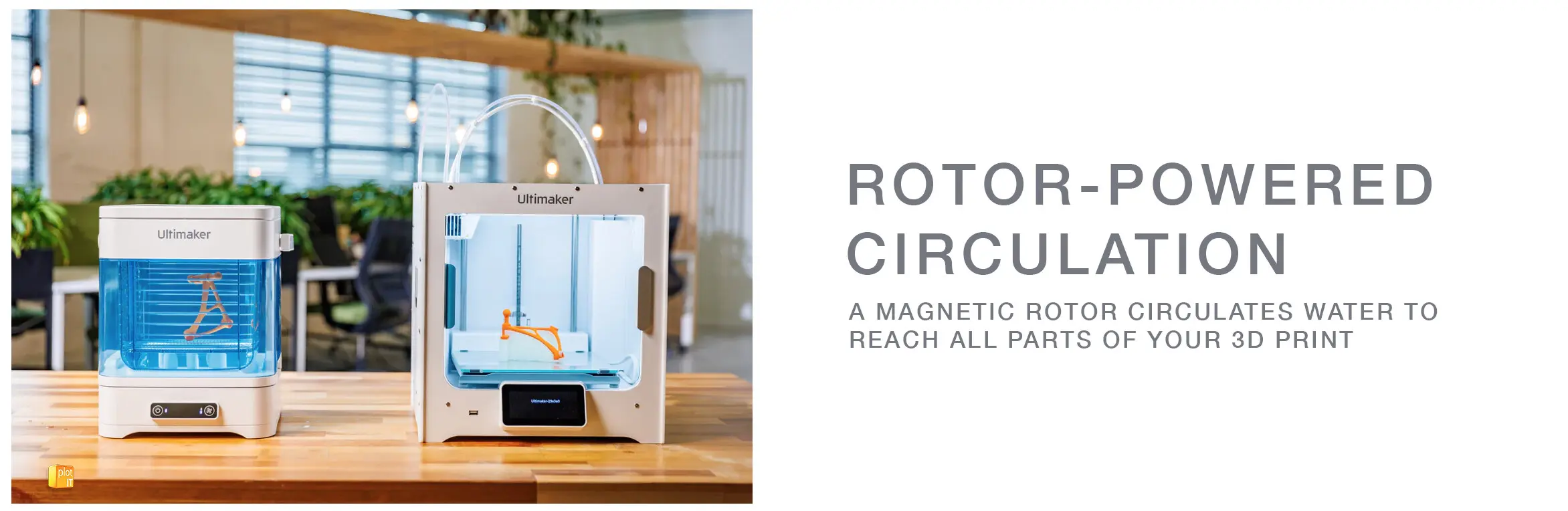 • ROTOR-POWERED CIRCULATION: A magnetic rotor circulates water to reach all parts of your 3D print