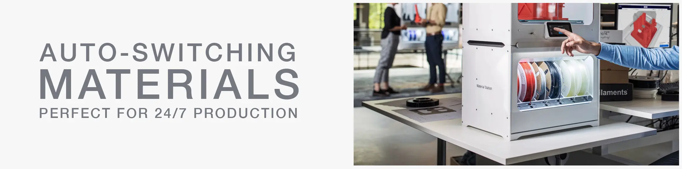 • UNINTERRUPTED PRINTING: Sensors detect when one material spool ends and automatically loads the next