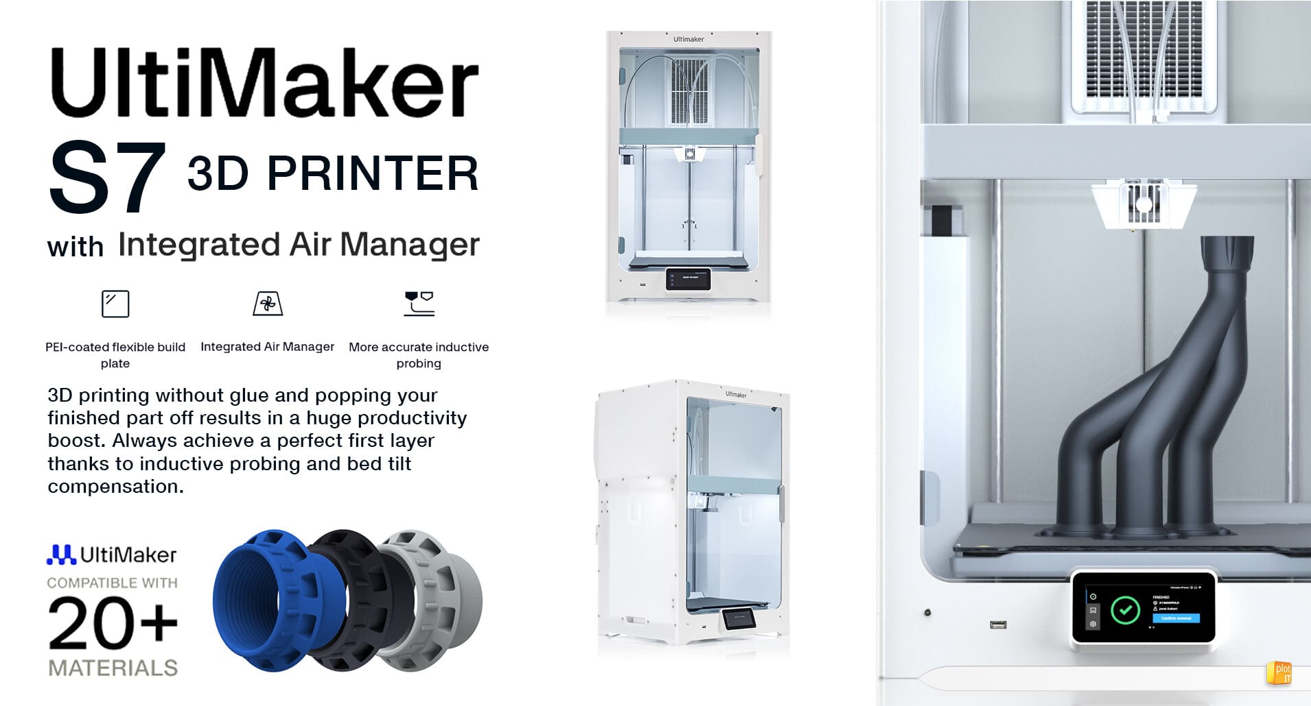 UltiMaker S7 3D Printer (234154): The UltiMaker S7 is your gateway to the entire UltiMaker platform. Access all the tools you need to start 3D printing – Manage and monitor your prints securely with the UltiMaker Digital Factory, improve your 3D printing knowledge with e-learning courses on the UltiMaker Academy, and choose from hundreds of materials and plugins using the UltiMaker Marketplace.