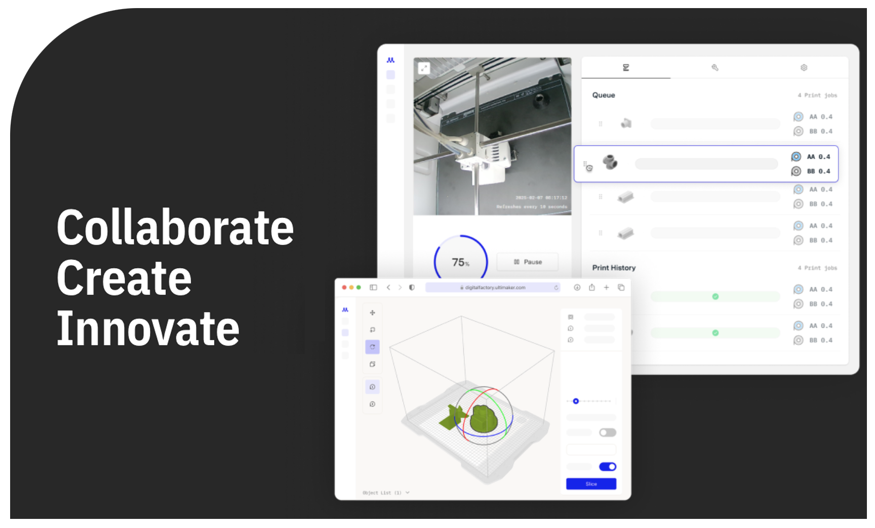 The expansion of Cura from desktop to cloud makes this powerful slicer accessible to all Digital Factory users. Additionally, the latest Cura 5.10 beta release includes optimised print and material profile settings to further streamline the process. Compatibility with the UltiMaker Marketplace also provides users the freedom to experiment with their choice of materials.